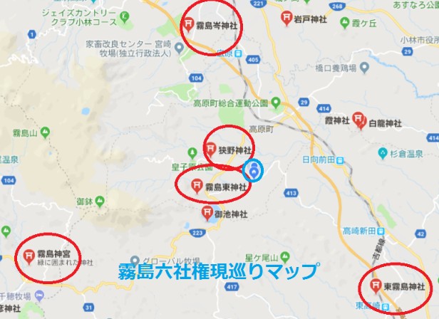 また、霧島六社権現(夷守神社は霧島岑神社に合祀されたので5か所)は自動車でしたら1日あればまわれます。