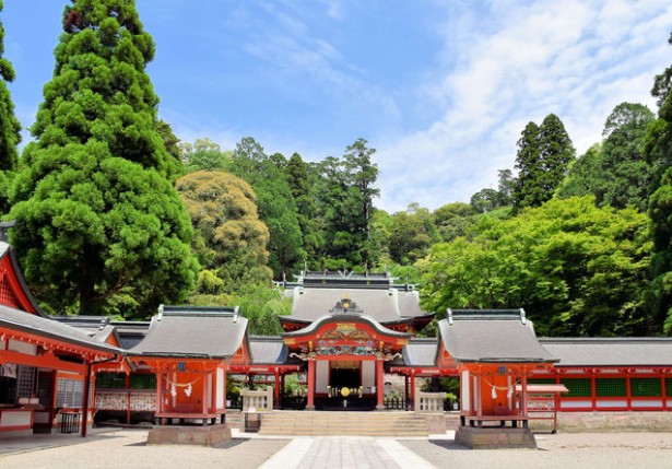 神話の地を巡る旅。天孫瓊瓊杵尊を祀る神社。坂本竜馬の新婚旅行の地としても取り上げられています。広大な土地は自然豊かで、紅葉の名所でもあるようです。現在の本殿は江戸時代に建てられ、屋根の色の深みと朱塗りの柱のコントラストは厳かというよりは力強く存在を主張している雰囲気です。
