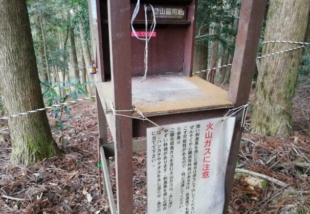 登山届出用紙に記入しようと思いましたが、用紙はなく廃墟状態だったのでスルー。とりあえずFacebookなどで今から登りますと数人の知人に一応知らせときます。いつも思うんだけど、登山届はQRコード式にすればいいのになと思う。(10:10)