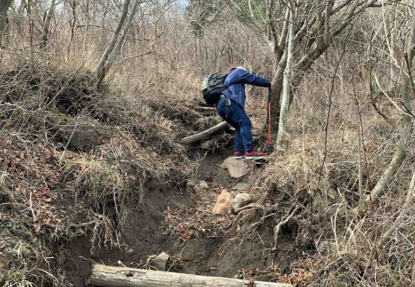 気を付けたいのが、この鉄の棒。昔、人口階段を作った時の残骸だと思うんですが、これが至る所にあって、気を付けないと足を引っかけます。(特に下るときには要注意)