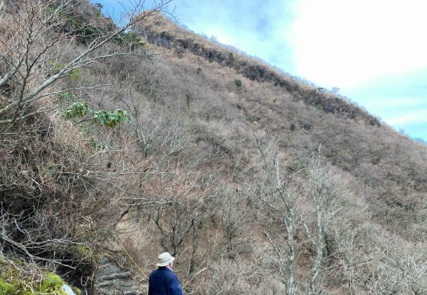 どんどん道が険しくなってきます。しかも雨に流されて道らしき道も消えかかってる状態。