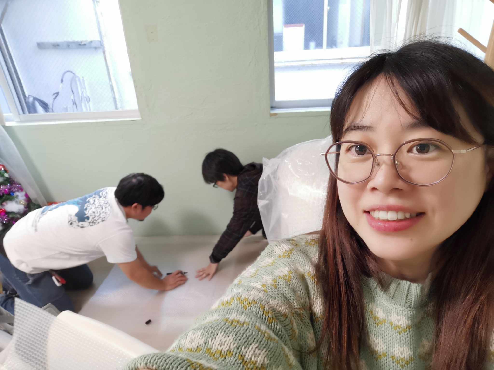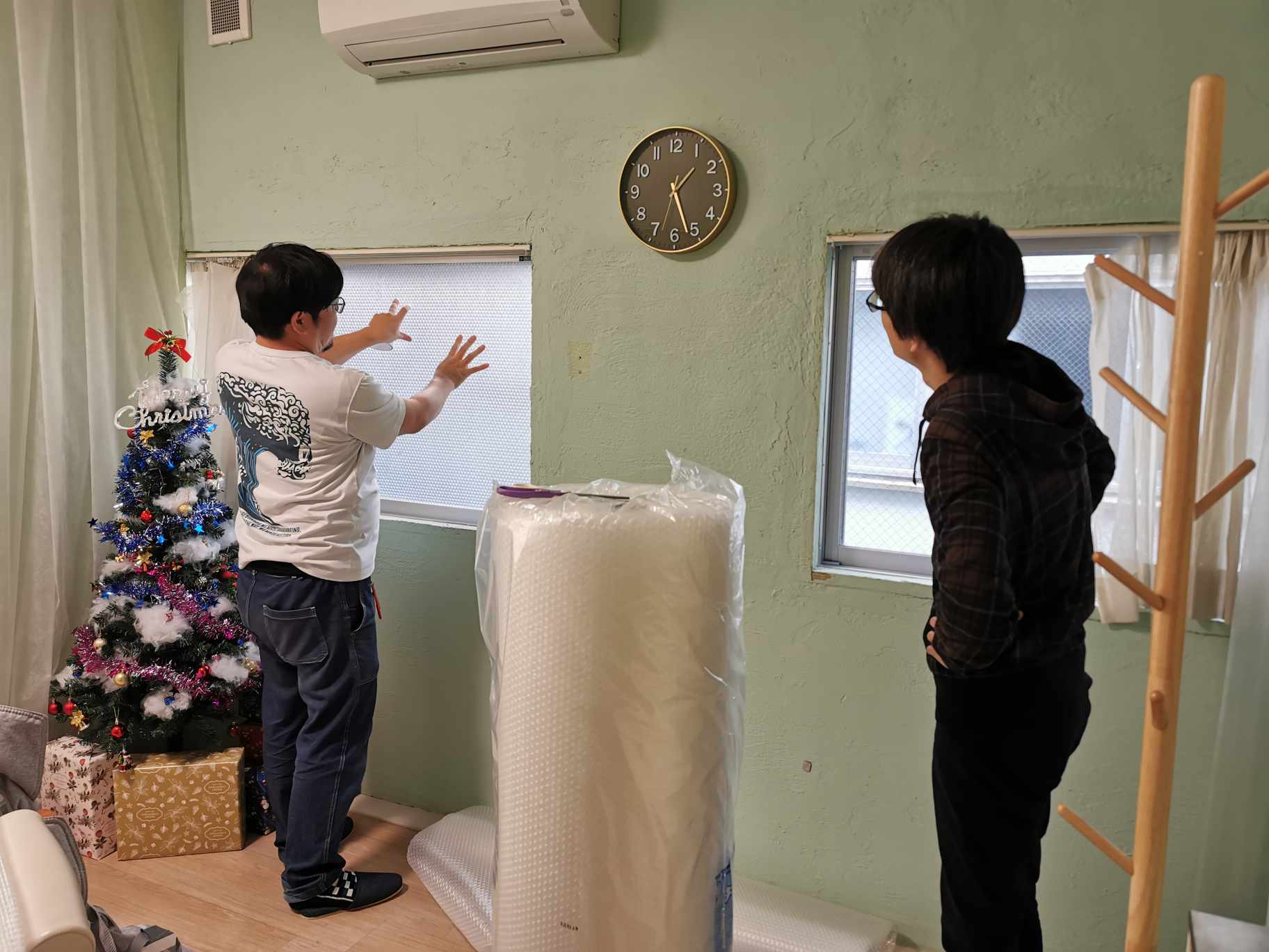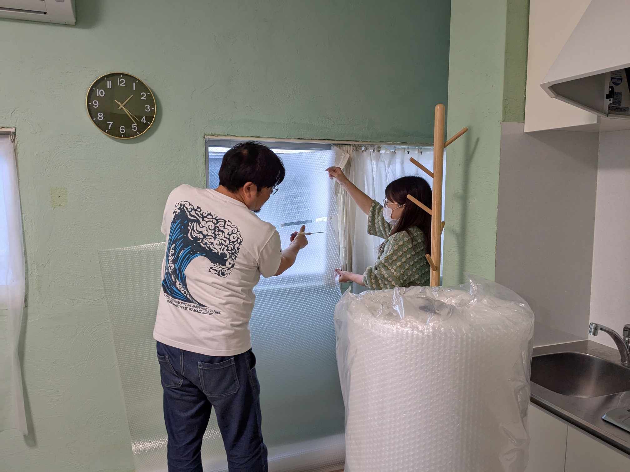 西の大きな窓にも全てぷちぷちを貼りました!