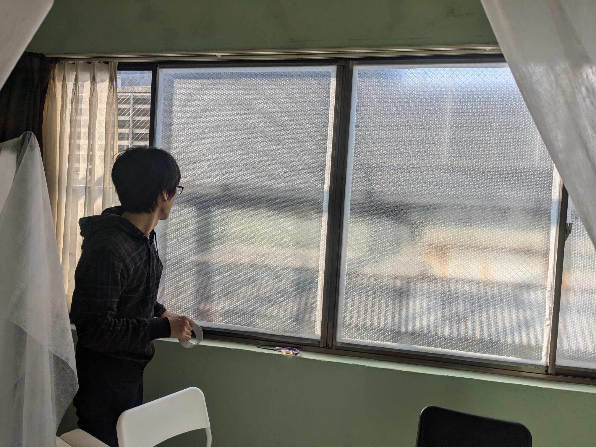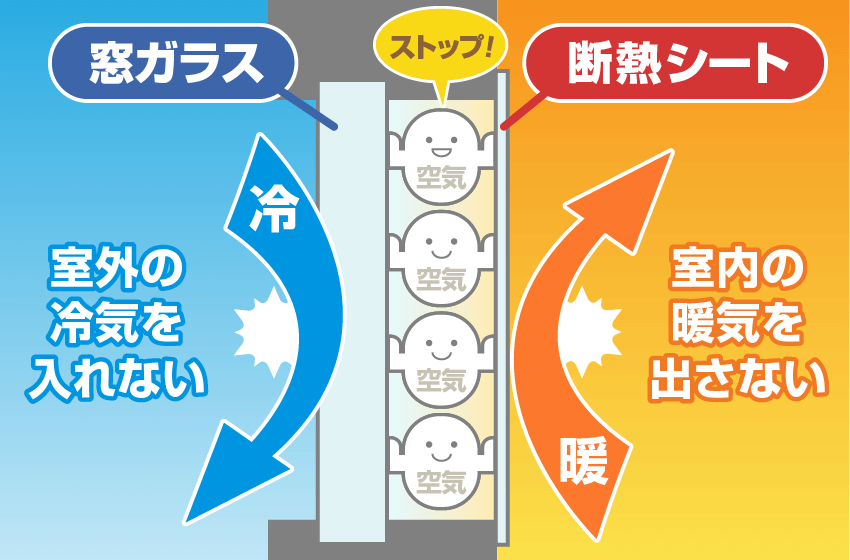 窓に貼ると窓とプチプチの間に空気の層ができて、窓からの熱の流出を防ぐことができます