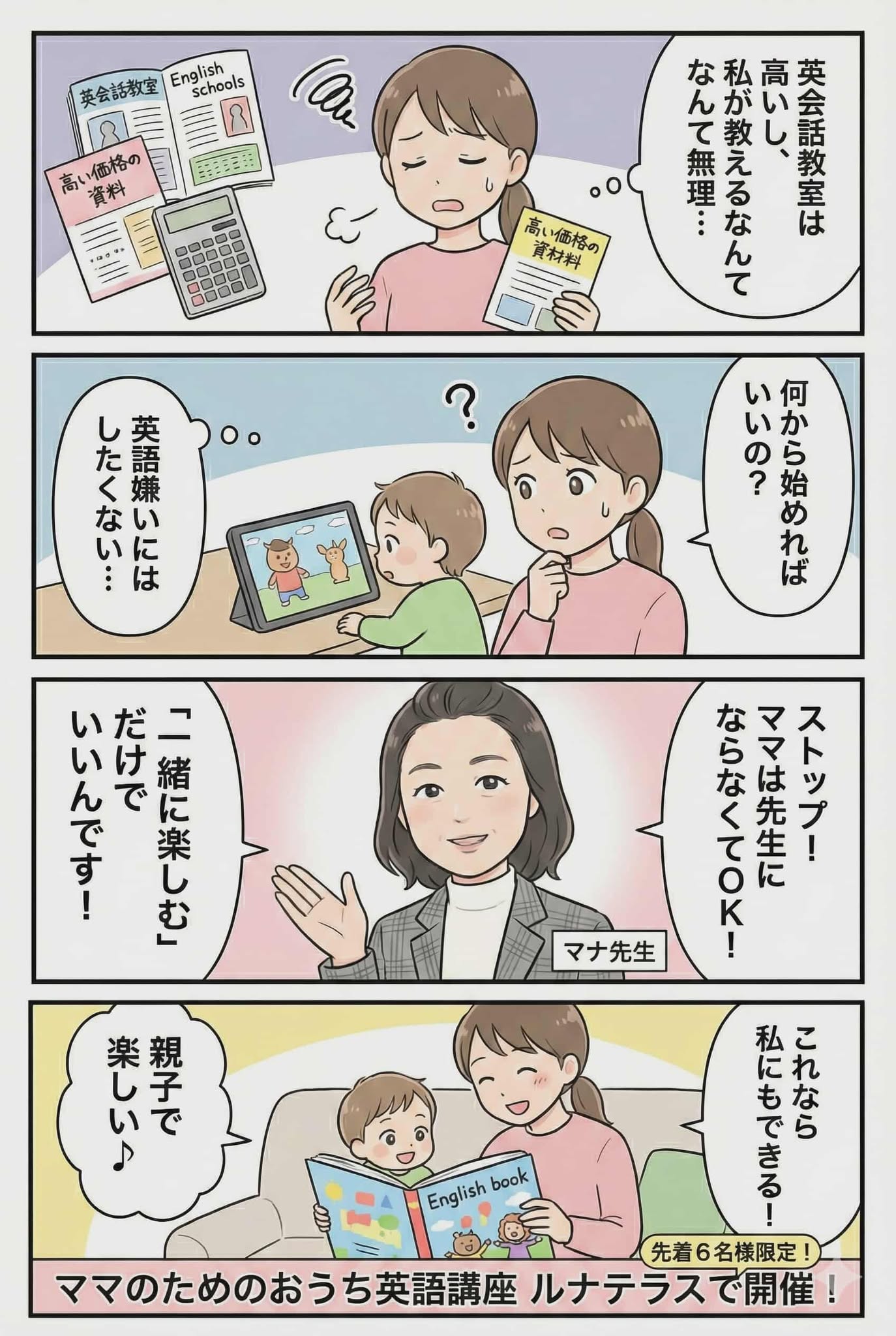 A1. 大丈夫です!むしろ “一緒に楽しめるママ” こそ最強です。英語=楽しいが子どもに伝わります。
